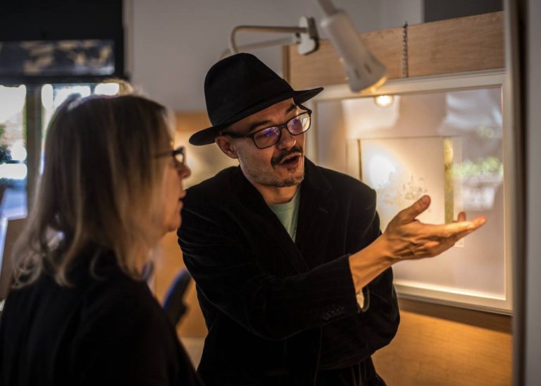 Fino al prossimo 27 Agosto, alla Banca di Credito Cooperativo di Impruneta sono in mostra i disegni di Valerio Giovannini. La selezione di opere presenta alcuni lavori a inchiostro e foglia d’oro zecchino su carta realizzati dall’artista nel 2016 in occasione della sua mostra personale “Laniakea. Il grande cielo” al Museo Comunale di Lucignano e ispirati all’Albero d’oro, il capolavoro di oreficeria medievale conservato nel museo.