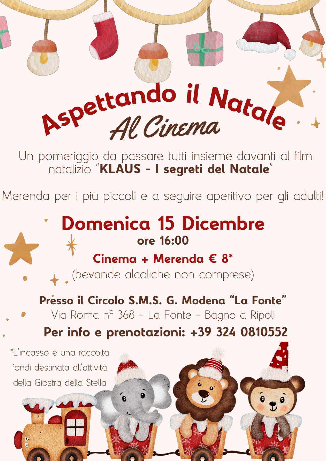 A dieci giorni dal Natale, anche il film in sala sarà in tema: “KLAUS – I segreti del Natale”: a seguire, poi, una merenda per i bimbi ed un aperitivo per gli adulti. Per molti sarà un pomeriggio speciale: il film di Natale, infatti, è una tradizione storica dell’SMS La Fonte – persa poi con il passare del tempo – ed i bambini di 30 anni fa, adulti e genitori di oggi, ben la ricordano. Dietro all’evento che si terrà domani c’è l’intento di riavvicinare la popolazione alle sorti del Circolo e di riportare giovani, bambini e famiglie all’interno dell’SMS.