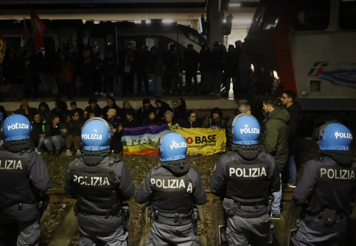 Protesta pacifica sui binari di Pisa, bloccato treno che trasportava mezzi militari