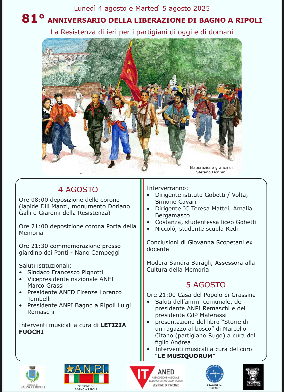 “Fare memoria è un dovere che abbiamo ereditato da chi ci ha permesso di vivere oggi in democrazia, nella pace, nella libertà – affermano il sindaco Francesco Pignotti e l’assessora Sandra Baragli -. Il tempo rischia di affievolire questo impegno, che ogni 4 Agosto, così come il 25 Aprile, vogliamo invece ravvivare. Coltivare la memoria significa educare alla cittadinanza, combattere ogni tentativo di riscrivere la storia o banalizzare gli orrori del nazifascismo, rendere omaggio alla Resistenza come simbolo vivo della lotta contro ogni forma di oppressione, oggi come allora. Per questo invitiamo tutte le cittadini e i cittadini di ogni età a prendere parte alle celebrazioni”.