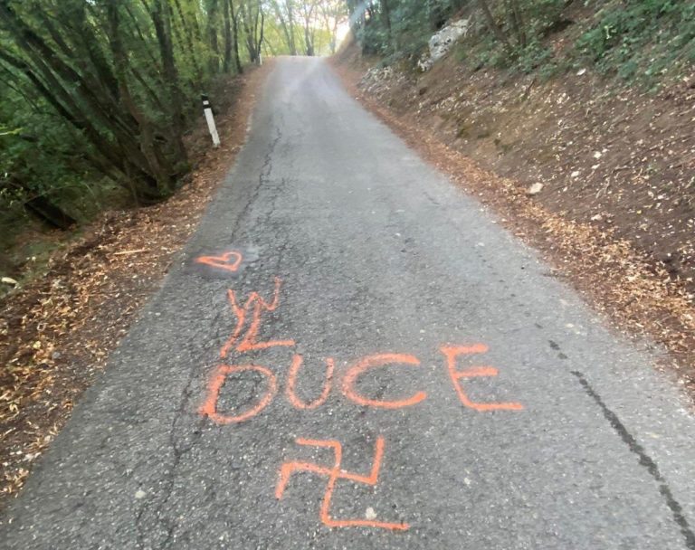Una scritta riprovevole è apparsa sull’asfalto di Via di Terzano nel Comune di Bagno a Ripoli, inneggiante Mussolini e con tanto di svastica…al contrario.