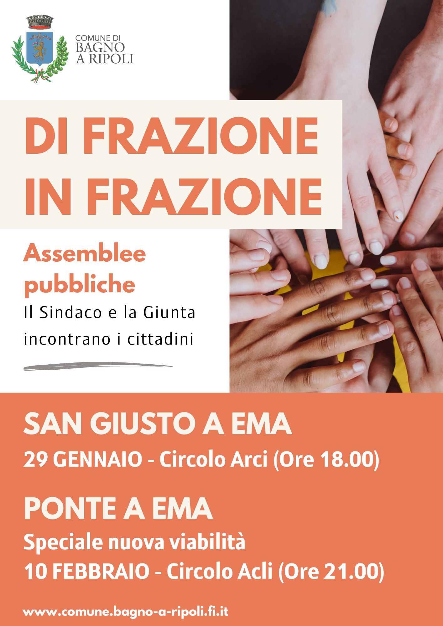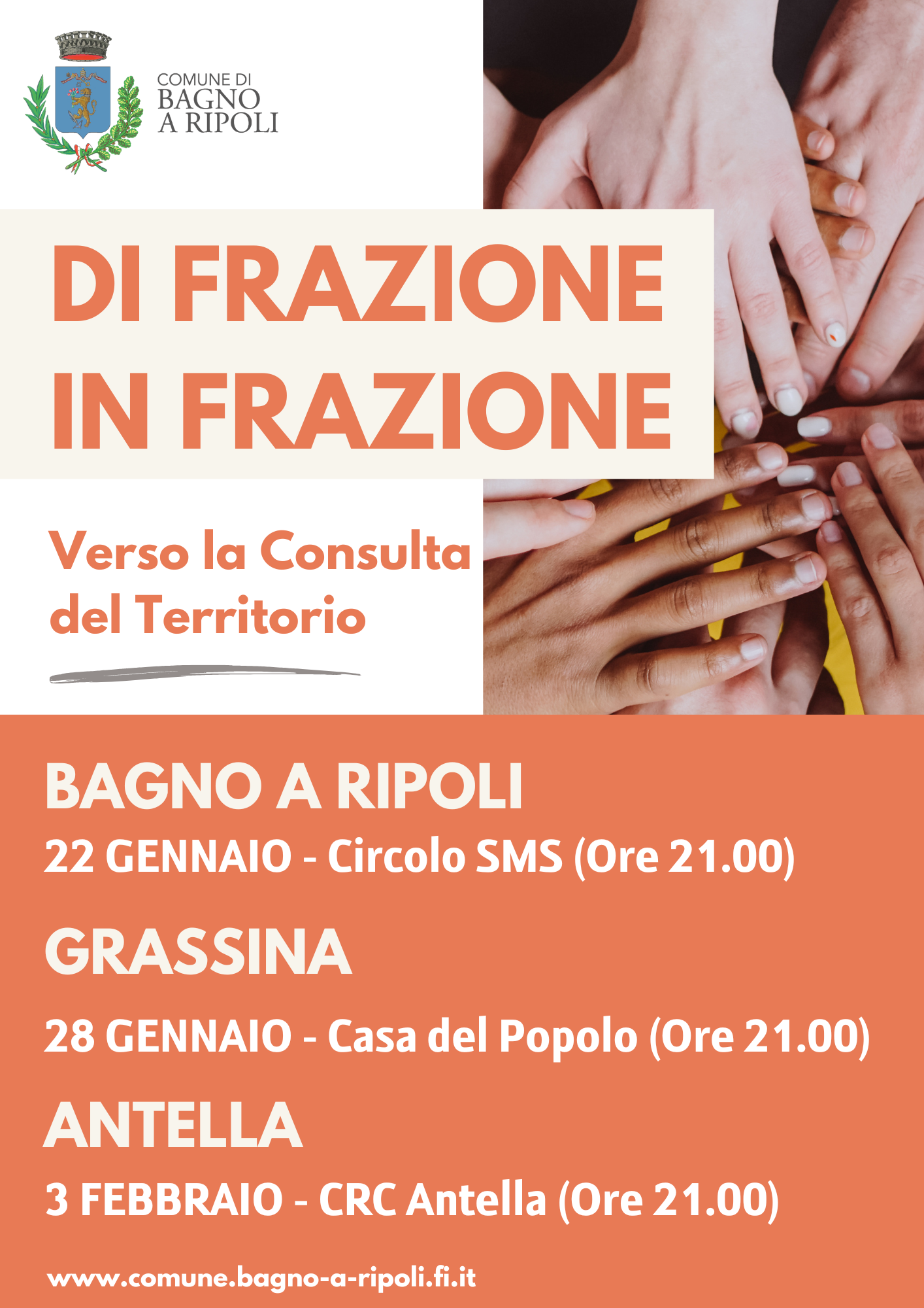 Dopo la definizione del regolamento con i contributi di associazioni e cittadini, il percorso per la creazione del nuovo luogo di partecipazione prosegue con un ciclo di incontri. Primo appuntamento il 22 gennaio nella frazione capoluogo. Il 10 febbraio iniziativa speciale a Ponte a Ema, a confronto sulla nuova viabilità. Ecco tutte le date
