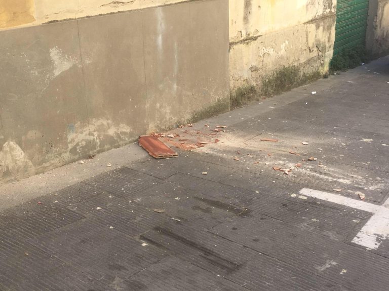 Impruneta, che succede? Un pezzo di tetto si stacca in Via Paolieri. Le Opposizioni: “Edificio già segnalato!”