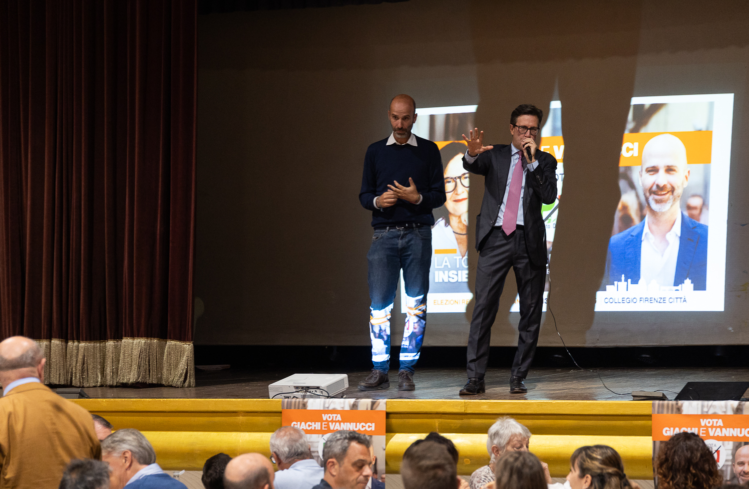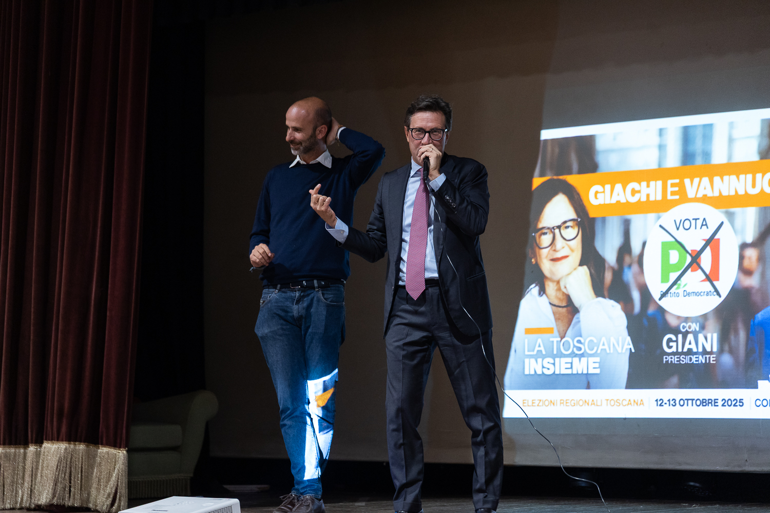 Insieme sul manifesto elettorale che promuove la loro candidatura, insieme anche ieri sera sul palco: “Girando la Toscana ho notato che la loro locandina è l’unica di coppia, segno che il noi viene prima dell’io“, introduce Eugenio Giani. Data la possibilità di esprimere una doppia preferenza di genere, Vannucci e Giachi possono essere votati entrambi, ponendo la X sul loro nome: ricordiamo che i due rappresentano il PD a sostegno di Eugenio Giani e sono candidati nel collegio Firenze Centro, il n.1 e n.2 della lista.