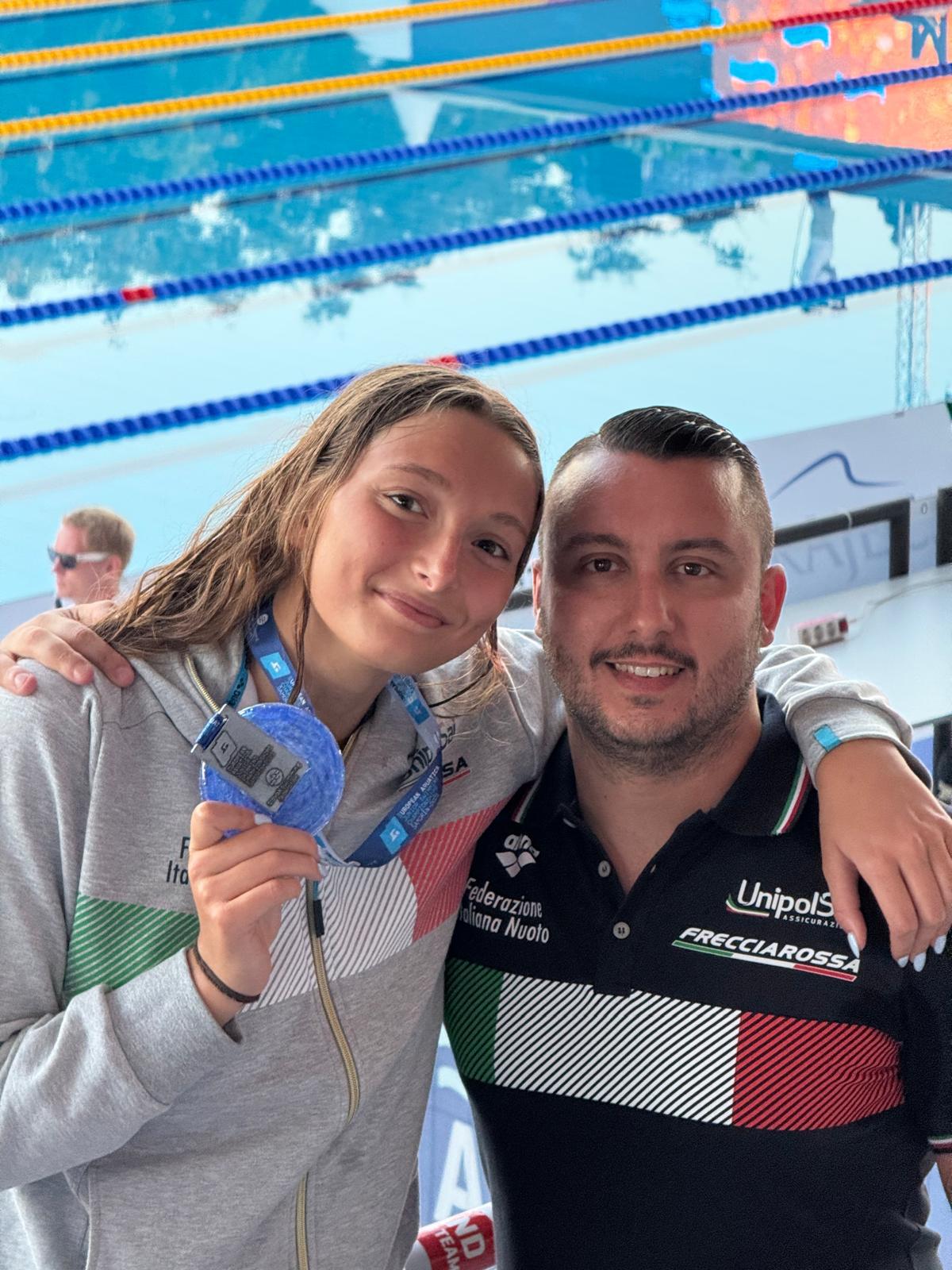 ARGENTO GIANNELLI: A completare il capolavoro biancorosso arriva anche la straordinaria prestazione di Emma Vittoria Giannelli, che nei 1500 stile libero ha lottato fino all’ultima vasca in una finale intensa ed emozionante, conquistando uno splendido argento europeo. Con il tempo di 16:13.11, Emma ha dimostrato ancora una volta la sua resistenza, la sua tecnica e una preparazione meticolosa, che la proietta tra le migliori specialiste di fondo del panorama continentale.