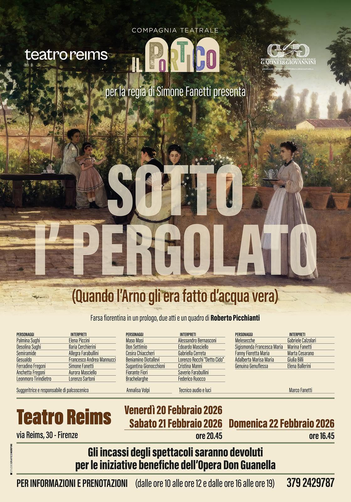 La compagnia teatrale “Il Portico” in scena con una commedia in due atti in vernacolo fiorentino, spettacolo di Roberto Picchianti con regia di Simone Fanetti. Il titolo? SOTTO I’ PERGOLATO (Quando l’Arno gli era fatto d’acqua vera).