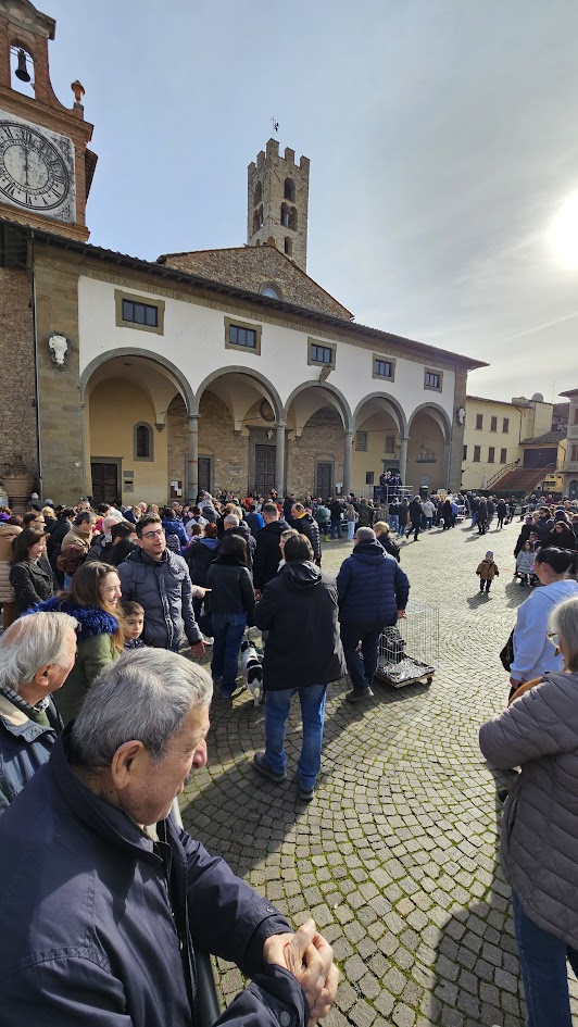 Questa mattina in piazza Buondelmonti si è svolta la tradizionale benedizione degli animali, che ha visto la presenza di centinaia di animali accompagnati dai loro proprietari. L’appuntamento affonda le sue radici nel 1982, quando Dino Bonaiuti, ispirato dalle antiche benedizioni contadine legate agli animali da lavoro e alla ricorrenza di Sant’Antonio Abate, chiese all’allora parroco di impartire una benedizione ai cavalli e ai cavalieri del paese. A sostenerlo c’era un gruppo di amici composto da Nino Tozzi, Alfio Ciolfi, Paolo Andreoni e Adriano Bogani.