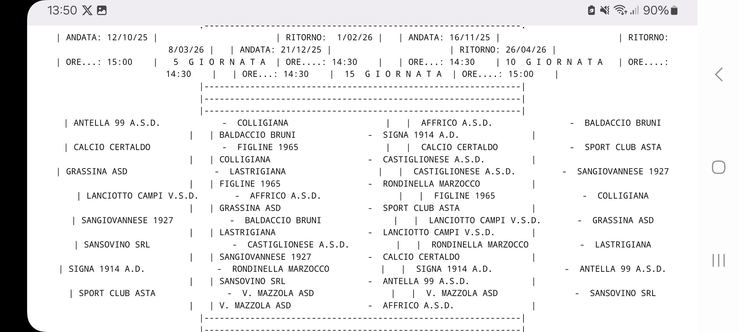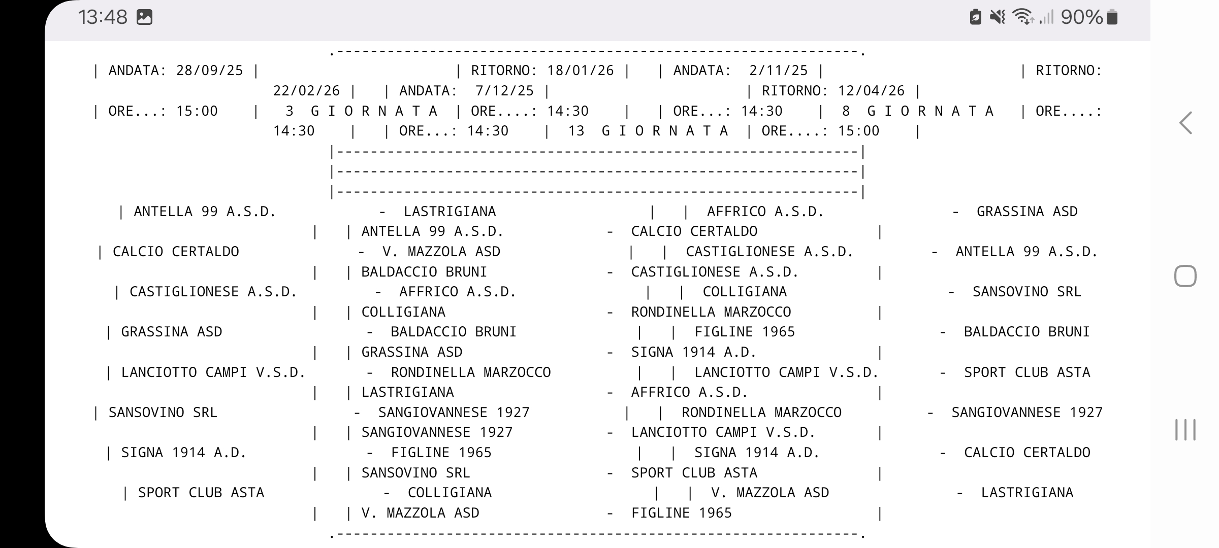E i derby? Tenetevi forte: Antella-Grassina alla penultima giornata! Andata in casa biancoceleste il 14 dicembre, ritorno nel fortino dei rossoverdi il 19 aprile. E nella stessa giornata, incredibilmente si gioca anche Lastrigiana-Signa. Si prospetta un turno di fuoco.