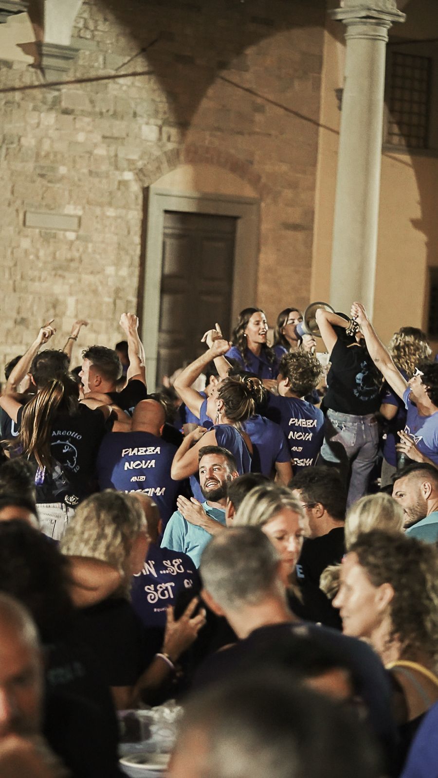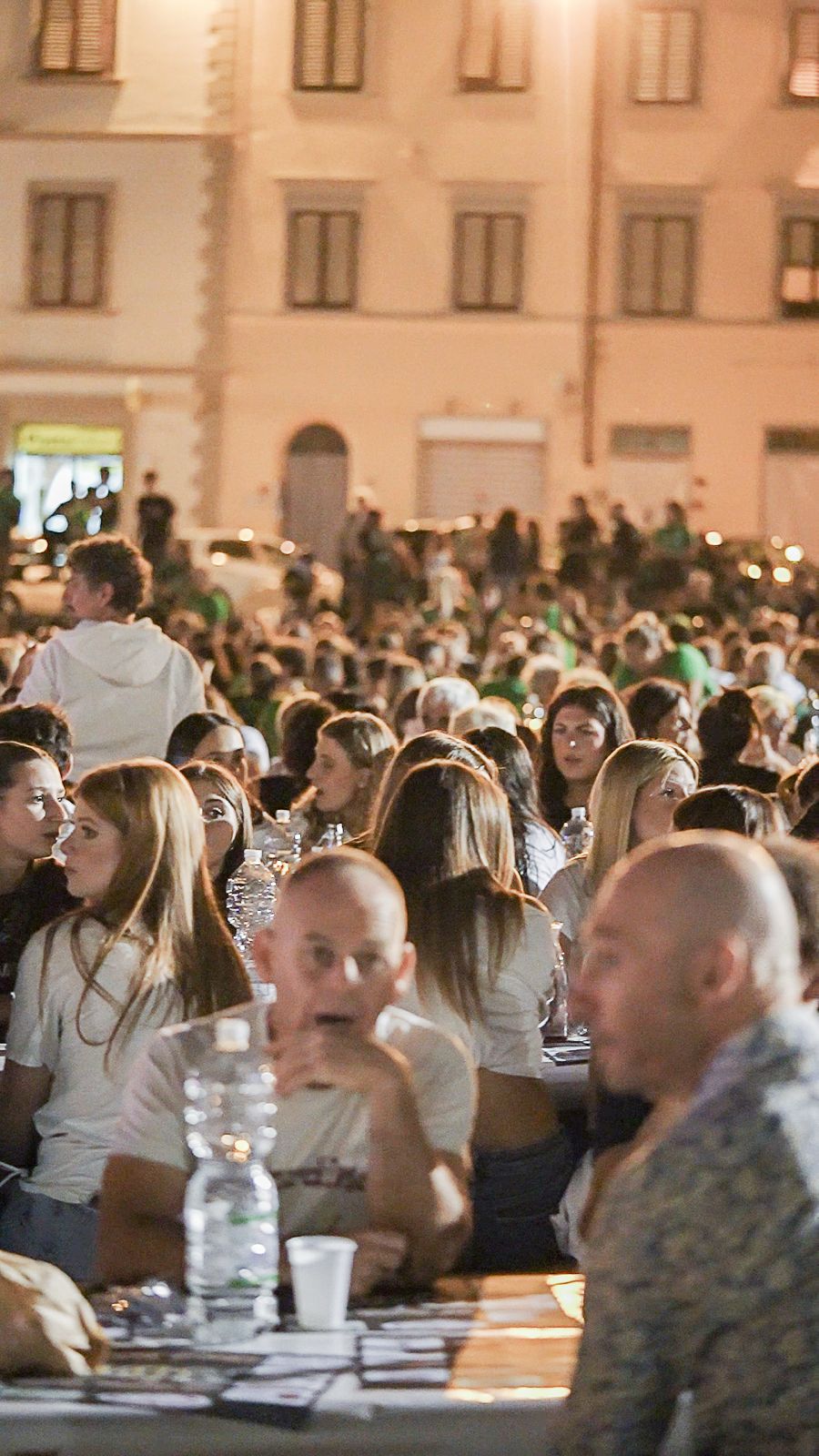 Grande partecipazione e atmosfera di festa ieri, 6 settembre, in Piazza Buondelmonti per la tradizionale Cena dei Rioni, appuntamento che ogni anno rinnova lo spirito di comunità imprunetino. Tra cori, sventolio di bandiere e i consueti sfottò goliardici, i rioni hanno dato vita a uno spettacolo che, oltre al divertimento, conferma il valore delle radici culturali e del senso di appartenenza.