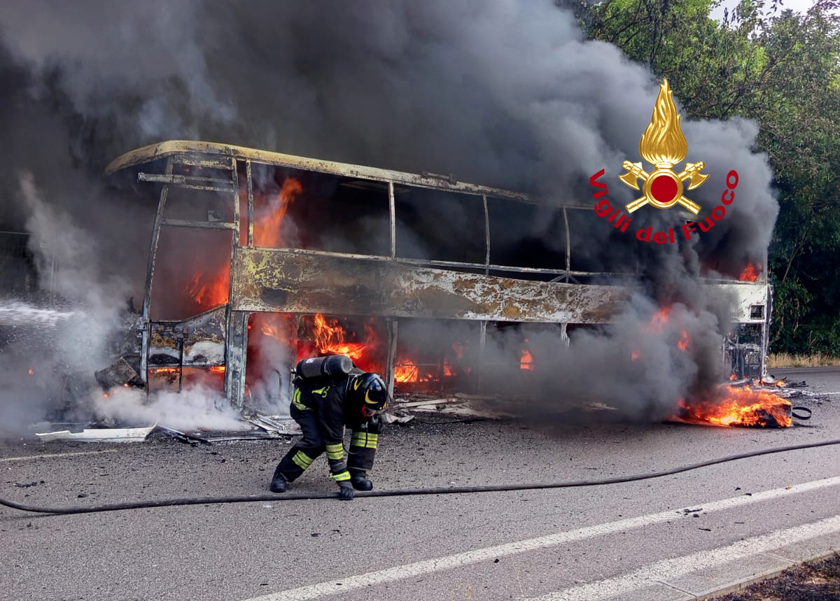 I Vigili del fuoco del comando di Firenze distaccamento di Fi-Ovest, sono intervenuti alle ore 11:10 nel comune di Calenzano sulla SP8 Via di Barberino, per un incendio di un pullman con a bordo il solo conducente, che è stato soccorso dal personale sanitario e trasportato al pronto soccorso per i fumi della combustione inalati. Sul posto una squadra e un’autobotte, sono in corso le operazioni di minuto spegnimento e di bonifica del veicolo e della vegetazione limitrofa.
