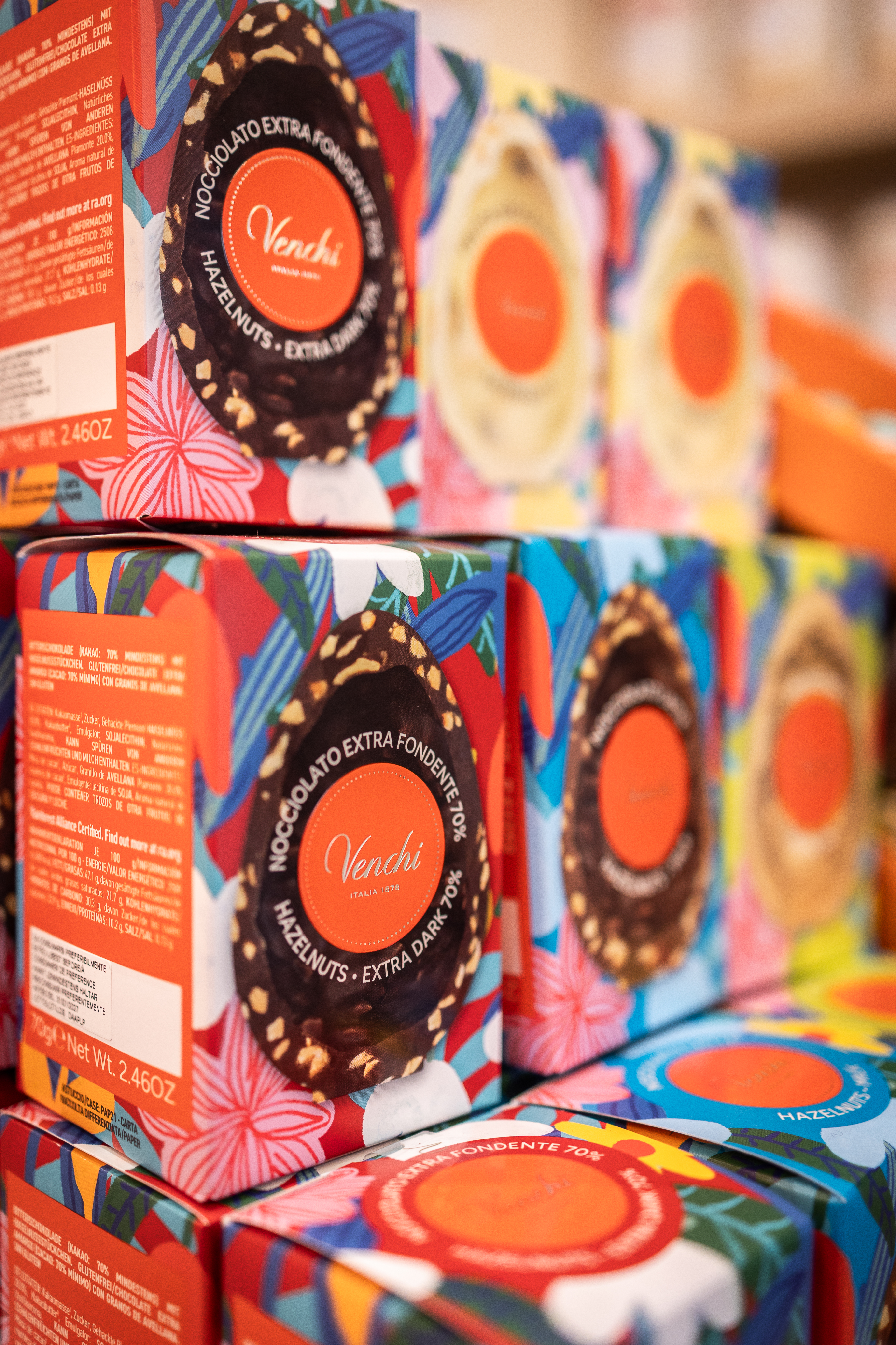 Sempre a marchio Venchi, Lisa e Laura vendono anche le confezioni a cilindro, regali eleganti e soprattutto buoni, al gusto latte e biscotto, cocco e chocobiscuit, fondente ed non solo. Per assaggi personali ci sono anche piccole uova gourmet Venchi e uova classiche. Per i più piccoli trovate la linea bimbo con doppio regalo, interno ed esterno!