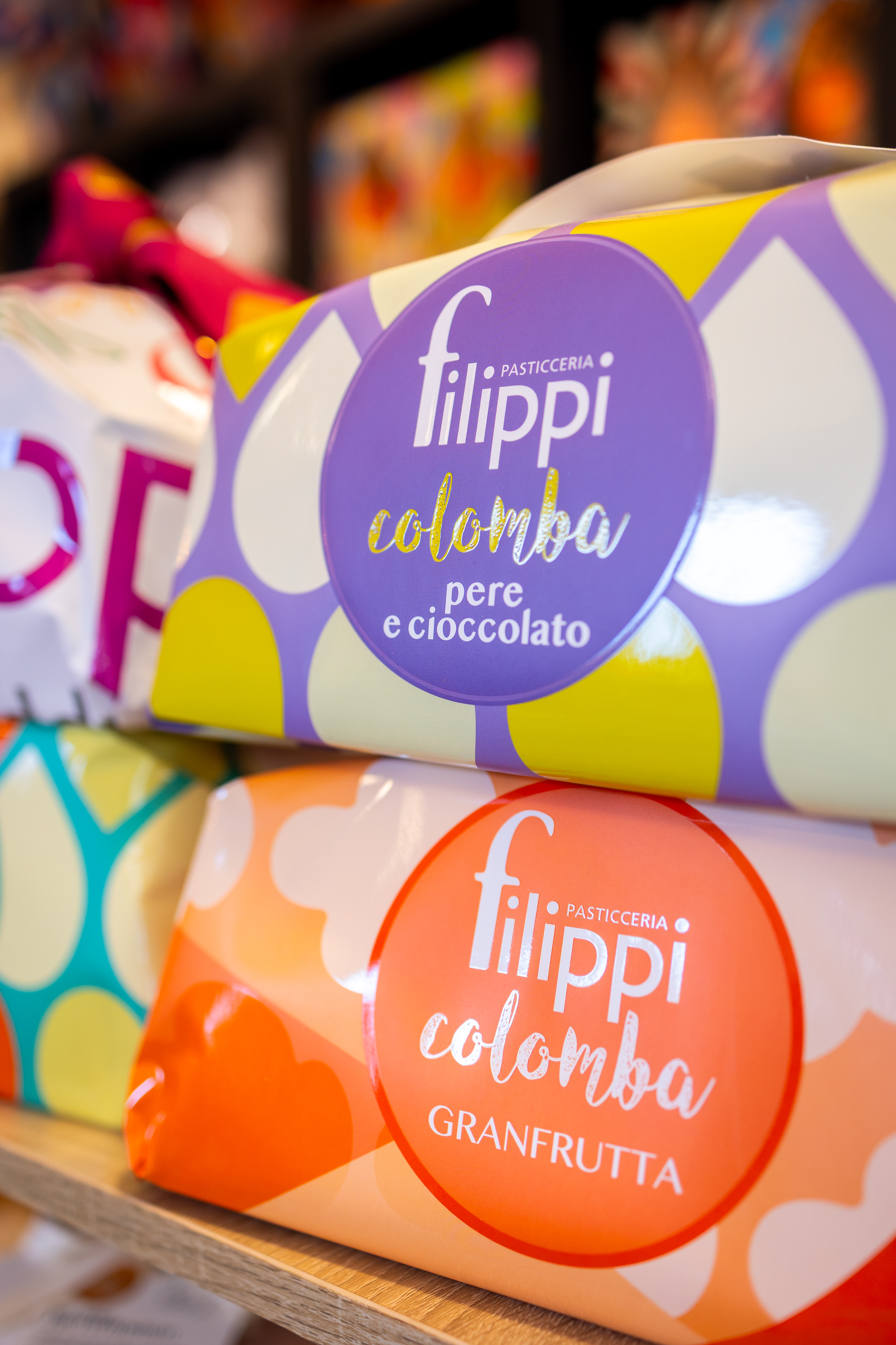 Potevano mancare, essendo Pasqua, le colombe? Le trovate artigianali di Filippi gusti classico, all’olio EVO, pere e cioccolato, lampone e cioccolato, gran frutta, arancia e cioccolato; e Fiasconaro gusto classico, ananas albicocca e pistacchio, frutti di bosco, albicocca e cioccolato di modica IGP.