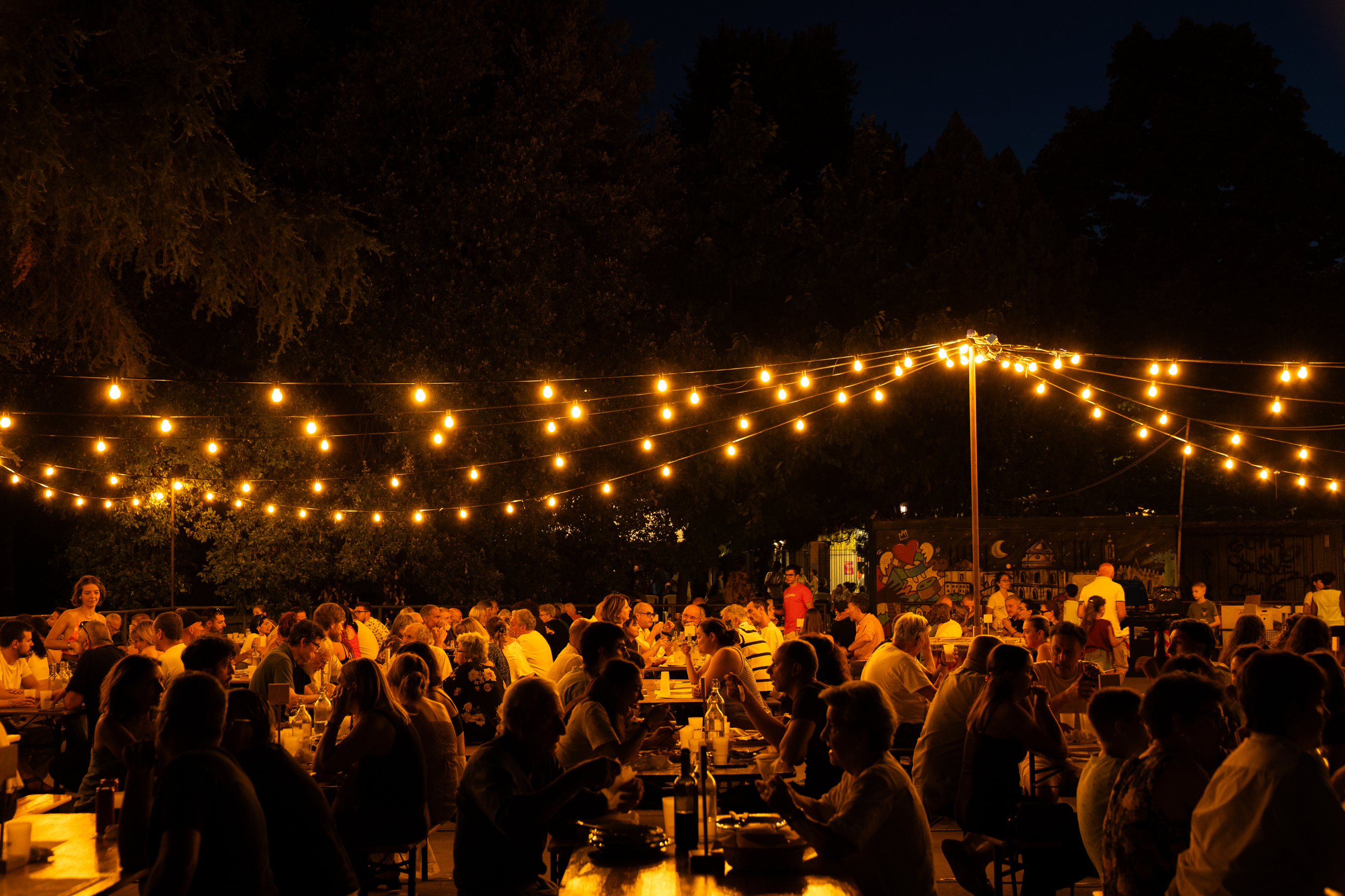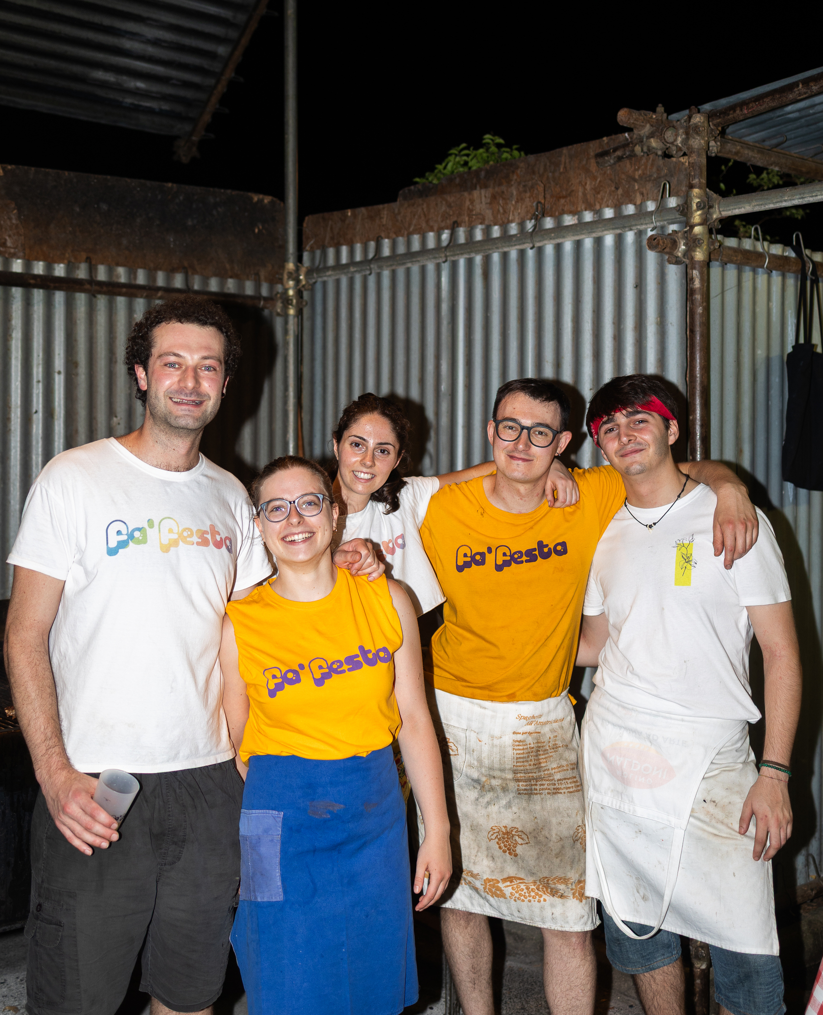 Dove? In Viale Tanini, nell’area degli eventi, in quel piazzale dove si è pattinato e ancora si pattina, ma solo al di fuori delle sagre che si succedono in estate. Il Fa’ Festa, organizzato dall’associazione La Scatola, nata nel 2008, è un qualcosa di eccezionale per la gioventù che raccoglie nelle diverse sfaccettature e per l’appartenenza al Galluzzo: a partire dalla presidente Floriana Harder, 25enne, La Scatola è una banda di ventenni organizzata in un ente del terzo settore, promuove socialità, musica e cultura e riesce a metter su un evento di 10 giorni ormai consolidato. Noi, che in quanto giornalisti vogliamo sempre sbirciare dietro le quinte, ci siamo intrufolati in cucina, fermando in uno scatto facce di volontari giovani e sorridenti: chi in zona pizzeria, chi ad allestire gli antipasti, chi alle alte temperature della griglia. Chi, infine, a depennare gli ordini ed organizzare le portate. Potremmo buttarci nella facile argomentazione di quanto sia stereotipata e fake la teoria dei giovani scansafatiche…ma non ci va, per stavolta.