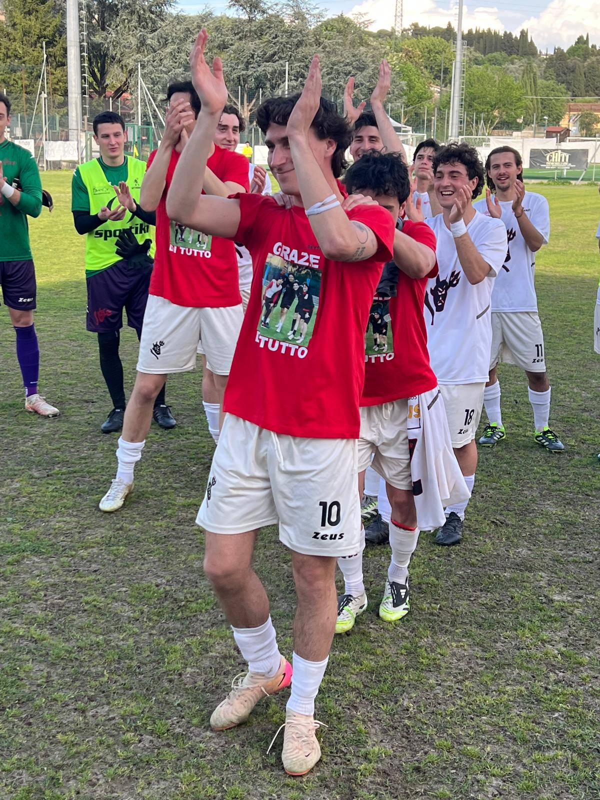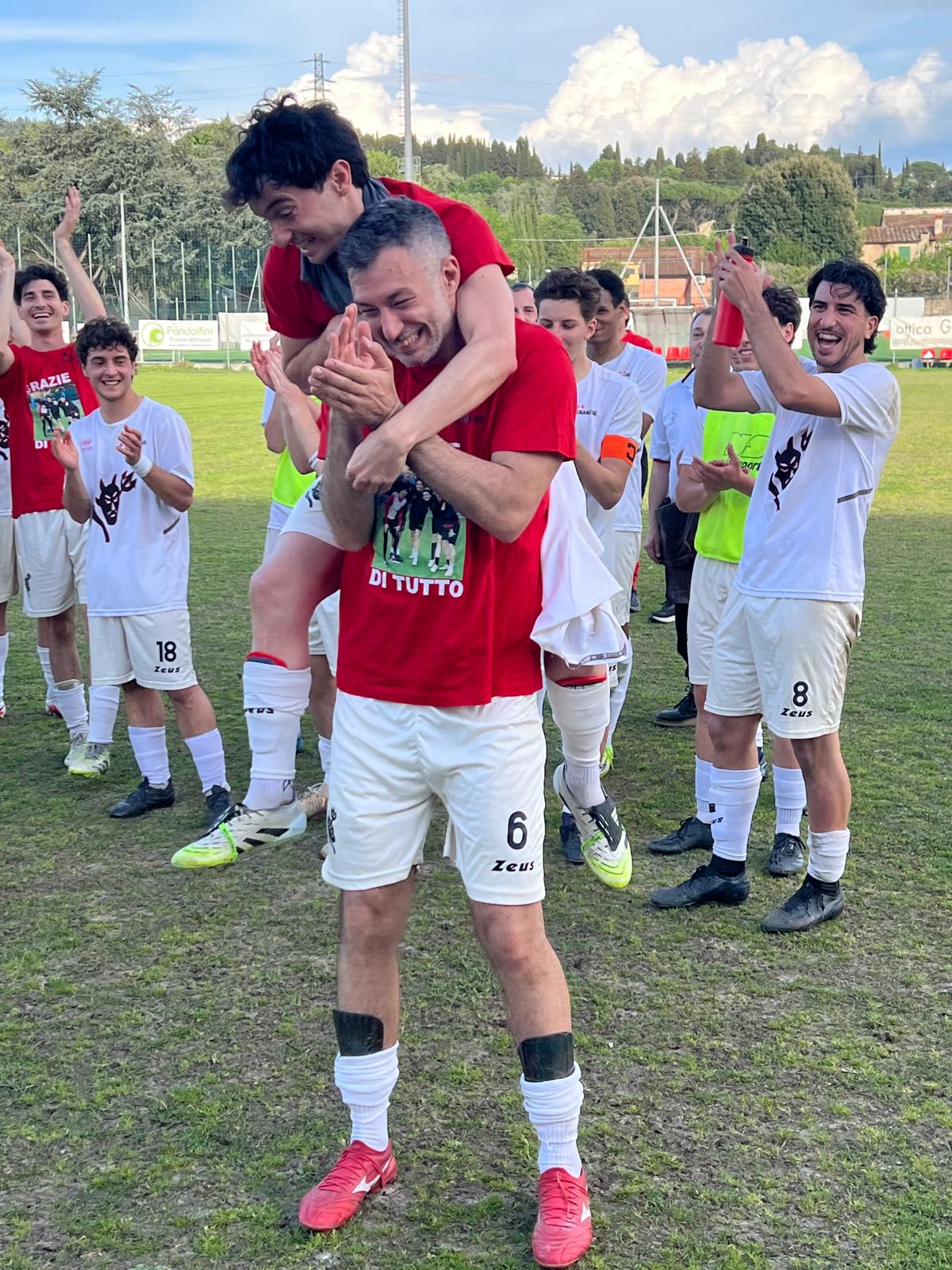 Parliamo di Tommaso Elisacci, capitano delle ultime 8 stagioni dei rosso-neri, Filippo Fani, Jacopo Corri, Lorenzo Tofanari, Filippo Capanni: la vecchia guardia che taglia lo striscione del traguardo e viene, meritatamente, salutata con il giusto riconoscimento. Anche perchè, questi qua, hanno fatto la storia della Settignanese: anche a loro, infatti, si deve l’approdo in Promozione nell’anno 2022-23, categoria mai affrontata prima e successo sportivo dilettantistico più importante dei diavoli, ottenuto con la vittoria dei playoff dalla compagine allenata da mister Paolo Milanesi.