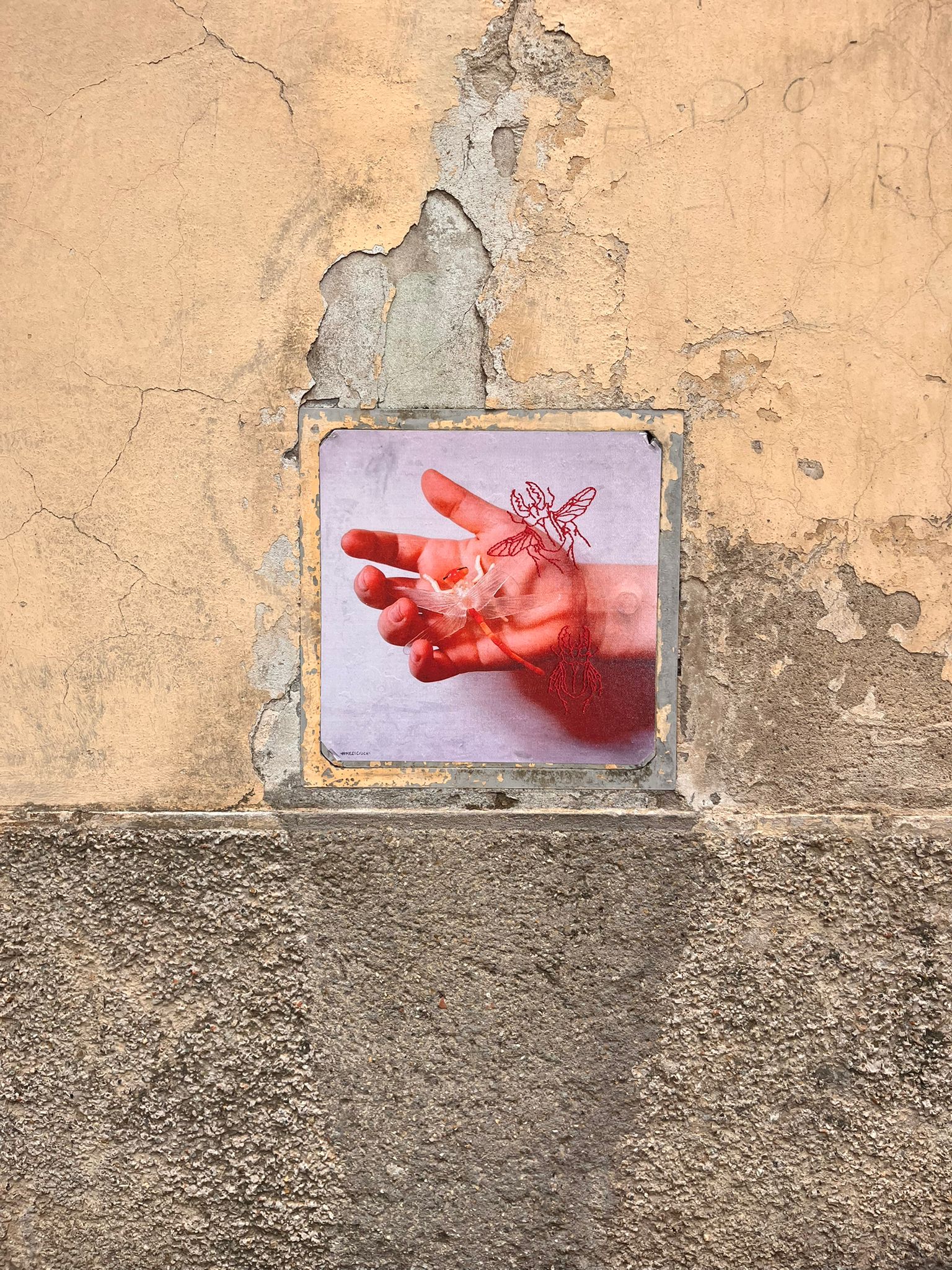 Meri Ciuchi (#mericiuchi), artista poliedrica, combina fotografia, pittura e ricamo. Le sue opere invitano a un cambio di prospettiva, dove insetti e dettagli simbolici si intrecciano a vissuti personali, con una poetica delicata e visivamente potente.