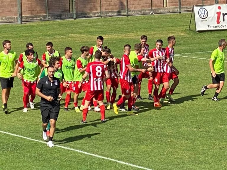 Chi merita la copertina, poi, è il Terranuova Traiana, neopromosso in categoria e subito protagonista. I valdarnesi fra le mura amiche abbattono 2-0 il Montespaccato e si prendono il primo mattoncino per la rincorsa salvezza. Mister Calori chiede aggressività nell’approccio alla gara e i suoi lo prendono alla lettera segnando due reti nella prima frazione: merito di Mazzei e di un autogol, mentre in precedenza Sacconi sbaglia un calcio di rigore, respinto dal portiere laziale Tassi. Ma quella del penalty è l’unica nota stonata: per il resto la sinfonia biancorossa va già che è uno spettacolo.