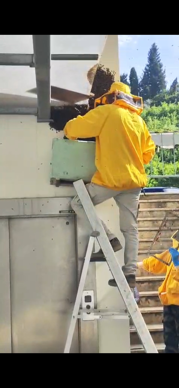 Recupero incruento si chiama l’operazione di messa in salvo delle api volta a prelevare uno sciame senza uccidere o danneggiare gli insetti. Due apicoltori esperti, contattati dal Gruppo Dipartimentale “Infestanti”, nell’arco di circa due ore sono riusciti a raccogliere l’ape regina e quasi tutto lo sciame al suo seguito. Collocate in un’arnia provvisoria, alle api recuperate ieri, si sono aggiunte con l’operazione finale di questa mattina, le ultime compagne, circa un centinaio, rimaste in zona. Sono state portate in un ambiente idoneo per farle ripartire operose in una nuova casa. Che è anche nuova ripartenza per la salute del nostro ecosistema.