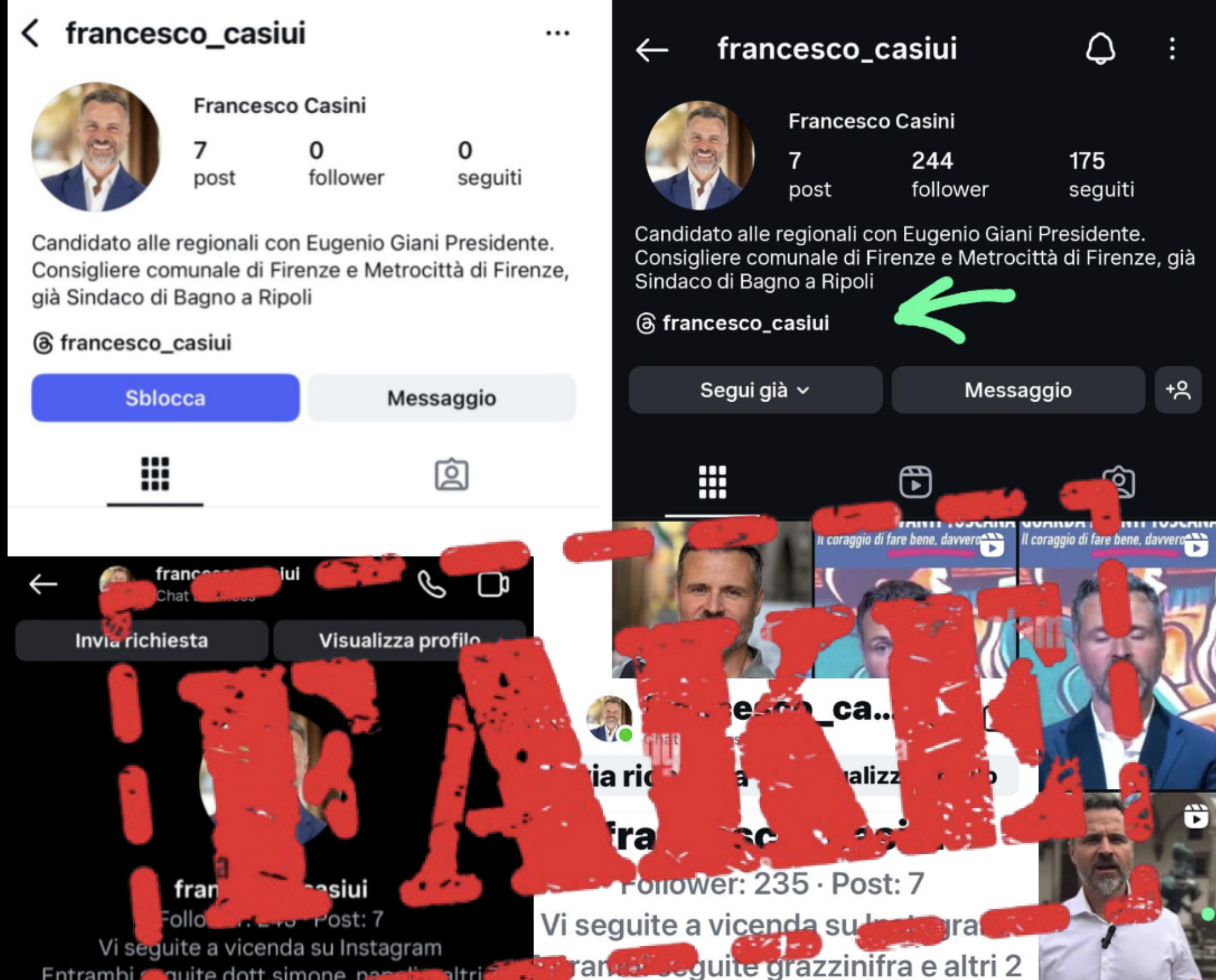 “Hacker” in azione e non solo nei confronti dei super vip: da qualche ora, infatti, viaggia sul web un profilo falso del candidato consigliere regionale Francesco Casini, attuale consigliere comunale di Firenze per Italia Viva ed ex sindaco di Bagno a Ripoli. Riprendendo le immagini ed i video del politico ripolese, è stato creato un nuovo profilo instagram intitolato francesco_casiui che invia messaggi nelle chat di instagram legati a richieste di investimenti finanziari e proponendo iscrizioni ad un nuovo canale whatsapp.