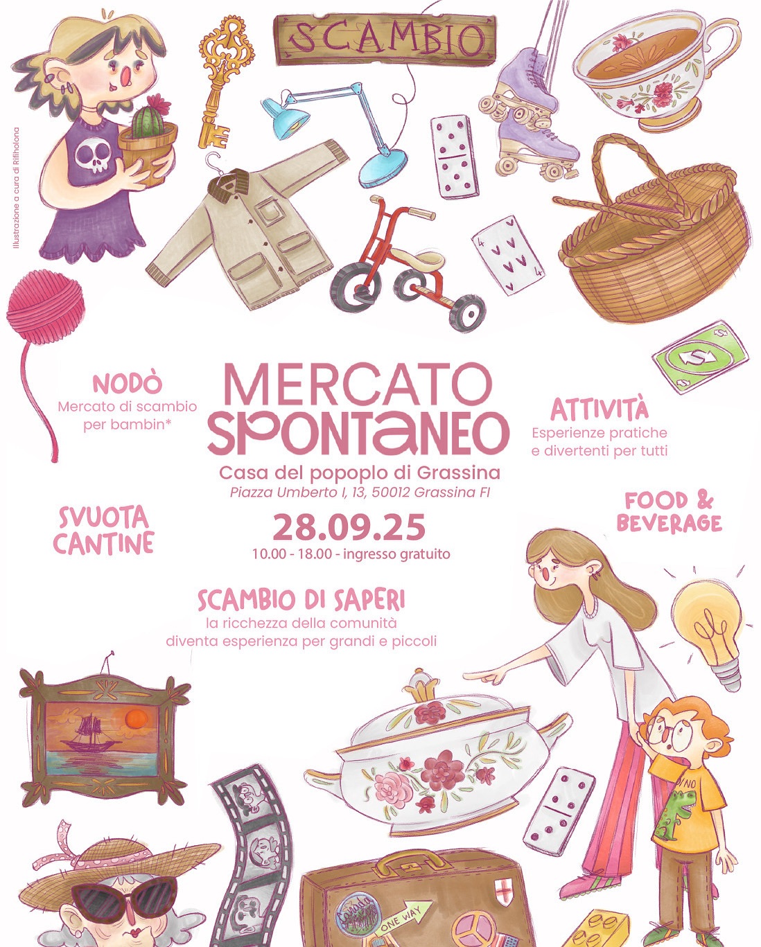 E’ tempo di MERCATO SPONTANEO. Cosa è, ormai, dovreste saperlo: una giornata ricca di socialità ed occasioni organizzato dalla Casa del Popolo di Grassina. Domenica 28 Settembre negli spazi interni ed esterni della struttura grassinese si terrà la 2° edizione di un’idea che funziona: riunire, attorno all’attività centrale dello svuota cantine, una serie di proposte laboratoriali, ludiche ed esperenziali, anche per i più piccoli. Inoltre, non mancherà la parte dedicata alla tavola, con la novità del pranzone.